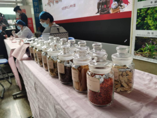 活动咨询的另一侧则向患者展示了膏方文化与传统中药材。