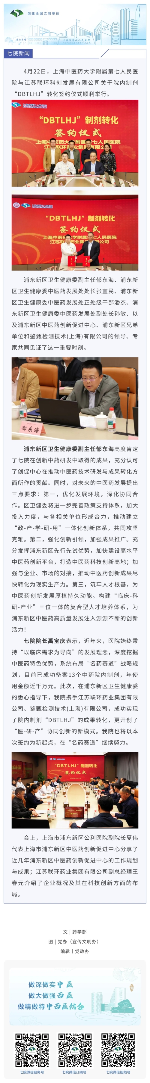 七院院内制剂“DBTLHJ”转化签约仪式圆满举行
