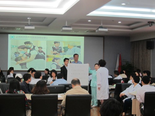 2014年5年18日医院领导、中层干部和科室主任、护士长共计130余人参加了在行政楼5楼学术报告厅举办的《科主任服务营销》的培训,此次培训一改填鸭式的课堂授学模式,培训对象被打乱顺序安排在10个圆桌进行讨论式教学,每组由组员推荐组长。