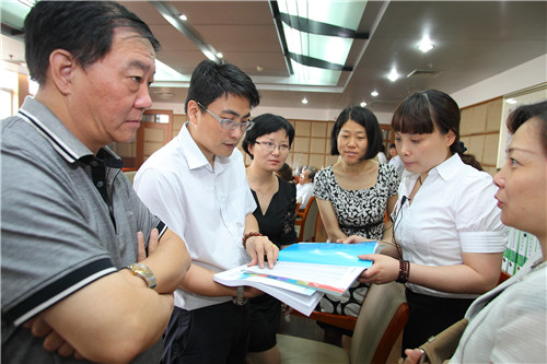 随后王杰宁院长做了工作报告,分别从医院的建设、医院内涵、教学推进、机遇挑战等4方面展开具体介绍。与会的检查人员对医院转型后的快速发展表示认同。按照检查议程,检查团随后分为6组分别对医院的台账,教学小讲课,教学查房,技能操作培训,教职、管理人员及学生的座谈会等展开实地检查。