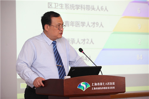 李荣华副主任代表新区卫计委致欢迎词,他充分肯定了医院在转型发展中的努力和成绩,指出我院申报上海中医药大学非直属附属医院,成为医教研一体以康复为特色的三级甲等中西结合医院是新区中医药事业推进的战略规划,对服务浦东二次开发具有深远的时代意义。依托上海中医药大学,融合传统医学与现代医学,建立一家三级甲等中西医结合医院是新区推进中西医结合工作的重要举措。新区卫计委将会一如既往在政策、编制、人才引进、财力投入等方面给予大力支持。