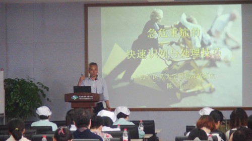 首先由上海中医药大学生附属龙华医院重症医学科(ICU)主任、上海中医药大学中西医结合内科学博士研究生导师、医学博士 、主任医师陈伟教授主讲《临床急危重症的快速识别与处理技巧》,以他丰富的临床经验,向我们讲述危重病患者的快速鉴别、诊断及中医处置,在场的医务人员均感到获益匪浅。