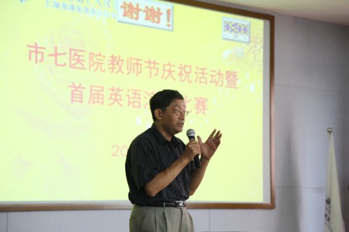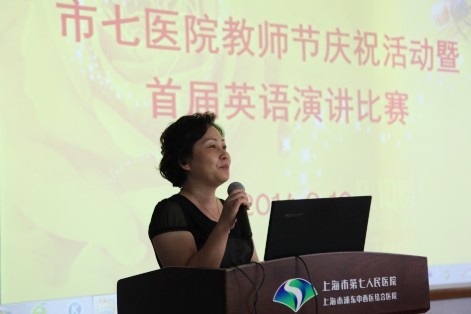 本次庆祝活动共分两个板块。首先进行了首届英语演讲比赛,特邀了上海中医药大学杨明山教授、韩丑萍老师、第二军医大学李平老师担任评委,15位英语达人在舞台上发表了“假如我是一名教师”的主题演说,他们的演说无论是内容主题还是语言表达,无论是流利程度还是演讲技巧,无论是仪表形象还是时间掌控,都充分展示了自己的英语魅力,给评委留下了深刻印象。赛后,杨明山教授用一口流利而标准的英语对比赛作了点评,肯定了参赛者的自信和勇气,对涌现出的英语佼佼者给予了高度赞扬,并希望在今后的工作中,发挥自己的英语优势,再接再厉,为医院发展做贡献!