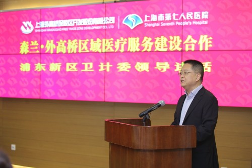 2014年9月28日, 上海市第七人民医院与上海市外高桥保税区开发股份有限公司举行战略合作签约仪式——《森兰·外高桥区域医疗服务建设合作框架协议签约仪式》,此次签约共由四个系列活动共同进行:合作签约仪式、专题研讨会、健康义诊、健康长跑。