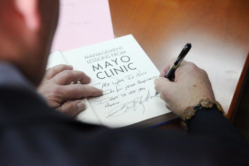 王杰宁院长在会上表示,非常欢迎Mr.Kent来访我院。《向世界最好的医院学管理》一书已经成为我院管理层共同学习的一本工具书,它为我们在日常管理学习中提供了很多有益的管理方法和依据,更让大家意识到一家好的医院不仅需要精湛的仁心医术,更要有卓越的管理之道,梅奥就是一家这样的医院。它“病人至上、团队协作”的核心价值观以及努力为病人的健康和幸福给予诚挚关注的服务理念是我们学习的目标。希望今后有机会再次探索梅奥的传奇事迹,早日实现将七院打造成为全国一流的三级甲等中西医结合医院的目标。最后,Mr.Kent将自己亲笔签名的《向世界最好的医院学管理》送给医院,双方合影留念。