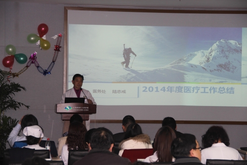 会议初,由医务处陆志成处长作2014年工作总结,在此期间我院建立两大体系:中医、中西医结合专科建设三年行动规划以及医疗保障体系;全面提升医疗质量;基本完成医疗核心指标;落实中西医结合内涵建设;建立专项管理机制;加强三基培训检查,大力发展科教研;增强服务意识等。陆志成处长布置了2015年度工作计划可以简洁概括为一二三四五:一个标准:JCI标准,两个方向:技术创新、病种结构调整(DRGS),三个重点:中医内涵、康复特色、科室整合与对外合作,四个专项:病史质量(DRGS)、临床路径(单病种)、医疗技术手术安全、核心制度,五个指标:工作量,手术率、医技收入占比、康复理疗比,全院药比,单床产值,平均住院日并加强我院中医内涵建设。