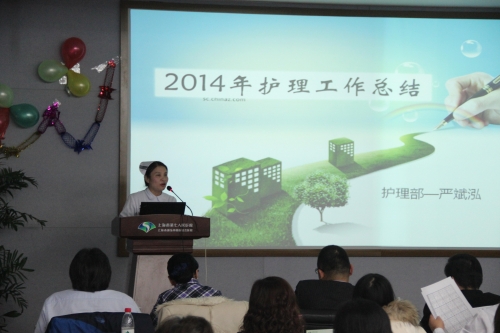 紧接着由我院护理部严斌泓主任对2014年度护理工作从护理工作、中医内涵、优质护理、岗位管理、信息管理、学术地位、科研教学、年度荣誉等几个方面进行总结,并对明年工作目标进行布置:总目标 :建设一支集 临床、科研、教学一体具有“康复护理”特色的“学习型”护理团队。分目标:临床护理:力争成为市级 “康复护理”实训基地;护理科研:拟申报市级 “康复护理”重点专科;护理教学:实现中医药大学《康复护理学》课程建设。