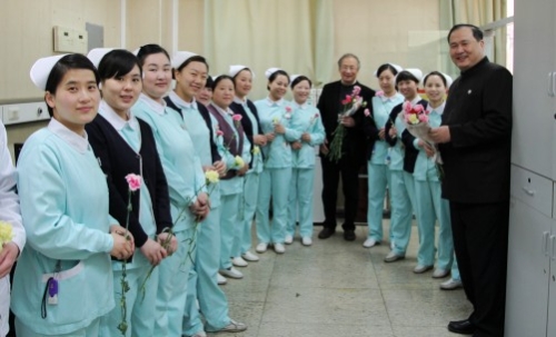 金羊贺岁迎新春,羊衔金穗报丰年。2015年2月19日(农历大年初一)一早,我院院长王杰宁、党委书记王山,副院长王澎、周一心、杨培民,工会主席林研、院长助理刘忆菁携院办、党办、医务处等职能部门负责人走访全院各科室,向坚守在工作岗位的员工致以亲切的慰问并送上新春的祝福。