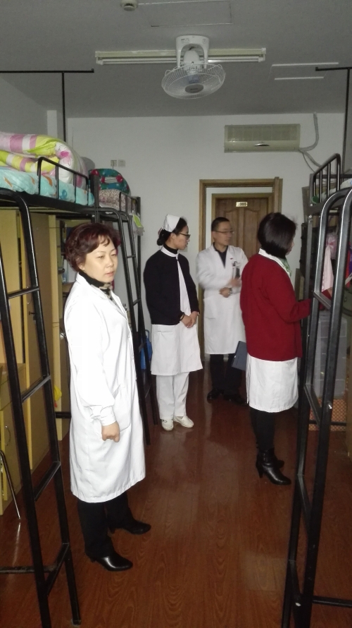 2月16日下午,我院教学处联合党办、护理部针对春节前离院学生寝室进行了卫生安全大检查。接受检查的寝室包括了实习生寝室、研究生寝室、规培生寝室。在周一心副院长的带领下,针对离院学生电器使用情况,留院学生春节期间生活安排以及宿舍监督管理进行了询问及指导。