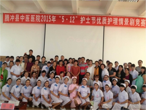 医务工作之外,我们一行还积极参与到腾冲县中医院的文化生活中。“5.12”国际护士节,在该院组织的护士情景剧竞赛活动中,我们积极参与,绽放灵感,展示才华。我参与编写了两个科室的参赛剧本并作为赛会主持人主持了整场节目,程英姿护士长为全院参赛科室进行排练指导并作为现场评分员、周贺参与了康复科的节目表演。深受感染了的余院长,评价这次活动是上海七院和腾冲县中医院合作的又一个里程碑!我们把七院人的实力、风貌与内涵,“不辱使命”地展现给了腾冲。