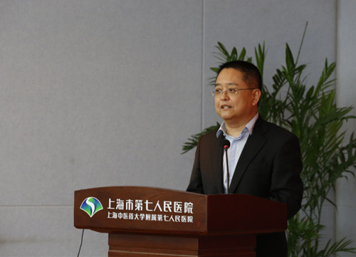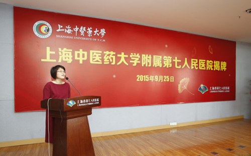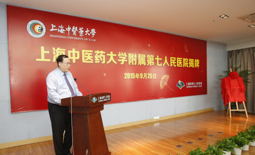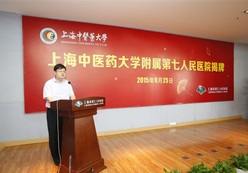 上海市教育委员会副主任王平宣读上海市第七人民医院列为上海中医药大学附属医院的批复。上海中医药大学校长徐建光、上海市卫生和计划生育委员会副主任郑锦分别做了讲话。