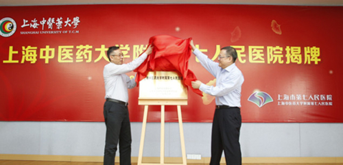 最后,上海市人民政府副秘书长、浦东新区人民政府区长孙继伟和上海中医药大学党委书记张智强共同为上海中医药大学附属第七人民医院揭牌。
