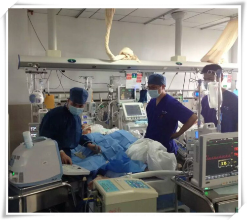 国庆佳节,举国欢腾。但对七院重症医学科的医护人员来说却过了一个不一样的国庆。国庆前夕,重症医学科收治了一例胸壁广泛脓肿、感染性休克的患者。入科时,患者意识昏迷,血压低,心率快,呼吸微弱,严重电解质紊乱,体温最高41.0摄氏度。在雷鸣主任指导下,姚玉龙医生立即给予患者气管插管并行呼吸机机械通气治疗;血透管置管;抗生素抗感染;血管活性药物升高血压;行PICCO有创血流动力学监测指导补液治疗。