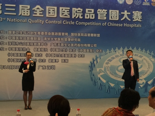 2015年10月24日,我院张洁函、吴永伟两位医生飞赴深圳参加“第三届全国医院品管圈大赛”。“心术圈”前期在参加上海站的比赛中凭借着技术含金量脱颖而出。经上海市医院学会推荐后,代表上海参加全国比赛。本次比赛我院列入“三级医院综合组”,大赛组委非常重视本组比赛,由中国医院品管圈联盟主席刘庭芳教授亲自坐镇评委席,同时邀请台湾医策会多位质量管理专家一同进行评审。张洁函、吴永伟两位选手面对重量级的专家以及来自于全国各老牌三级医院的精英团队,减压上阵,在全国品管圈比赛的舞台上,他们专业、大气、沉稳、流畅的台风,展现了七院人的卓越风采,并得到了现场评委和观众的高度评价与赞许,最终取得了“三级医院综合组二等奖”的好成绩。他们的出色表现让七院首次在全国同行面前完美亮相,并代表七院在有着国内多家知名三级医院激烈竞争的竞赛中崭露头角。