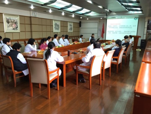 首先,金珠副处长对我院2015年度中医工作进行了回顾和总结,同时对2016年中医工作计划进行了简单的介绍。2015年,我院在中医工作效率和工作质量方面都有所提升,在中医内涵建设方面也多措并举,如建立“七院微友群”、做好中医三基培训、大力推行中医查房、创新模式开展六师查房、建立中医综合治疗区、搭建中医传承平台、组织落实膏方门诊等。在2016年的中医工作展望中,我院要继续努力,提升工作效率,做好中西医结合诊疗工作和中医的传承工作。