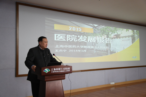最后,王杰宁院长做了医院发展报告。回顾2015年,我们继续攻克难关,取得了又一阶段的胜利——顺利创评成为上海中医药大学附属第七人民医院。医院中西医结合服务能力提升,医院内涵不断持续改进。医疗质量和效率稳步提高,满足了深化医改的需求。同时医院注重开展优质护理,加强专科和人才建设,提高教学能力,提升优质服务,做大健康管理,做好援疆、援滇对口支援,完成了质量考核进一步完善,使医院整体水平稳步提升。新的一年,王院长明确新的“十三五”规划医院发展目标,他表示发展是硬道理,医院要向管理要效益,完善运行机制,主动适应医改。明确2016年工作具体计划及措施,并倡导“升级转型求发展,创新突破寻跨越”的发展方向,鼓励全院上下齐心协力,尽早实现将医院打造成为全国一流的三级甲等中西医结合医院的目标。