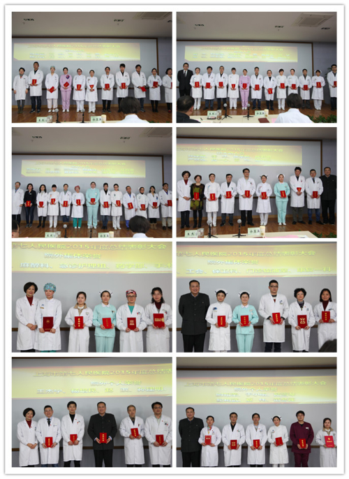 表彰大会第二阶段,院领导为医院优秀职工、先进集体及先进个人颁发荣誉证书。