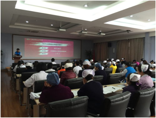 接下来,人事处张由甲对全体考勤员进行培训。培训内容包括:医院考勤管理流程、考勤相关表单的填报原则、注意事项等。