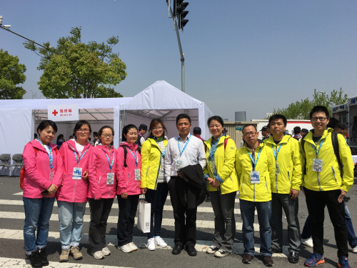 本次医疗保障队由医务处副处长余敏带队,医务处王晨负责组织联络,队员从急救经验丰富的急诊科、神内神康科、麻醉科等科室中挑选。我院负责19-21公里的医疗保障,医院为队员们准备了统一的保障服,整个医疗队展示了良好的精神风貌和高瞻的医疗技术,共计为300余名参赛选手进行了医疗服务,是最闪亮的医疗保障队。