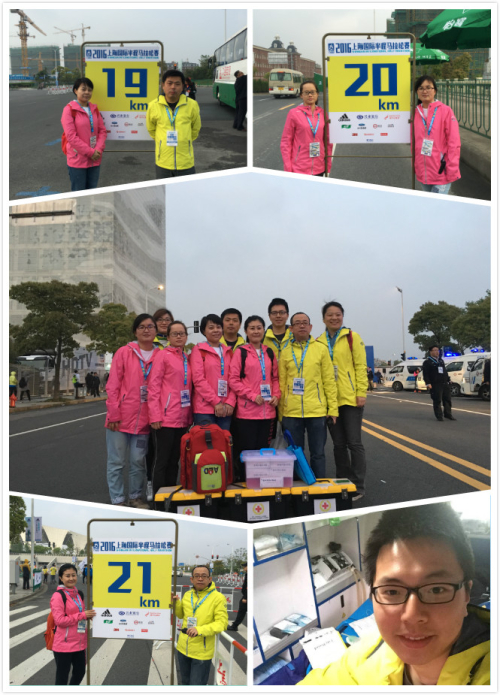 2016年4月17日凌晨4点我院9名医护人员精神饱满的从医院出发,前往东方体育中心为上海国际半程马拉松比赛进行医疗保障。