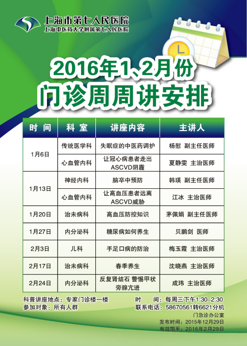关于“2016年1、2月份门诊周周讲安排”的通知